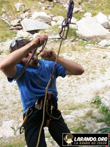 Petit cours d’alpinisme (ou d’escalade) près du Grand Paradis (Gran Paradiso) en Italie. Un sommet des Alpes italiennes occidentales situé entre la province de la Vallée d’Aoste et la ville de Turin en Italie.