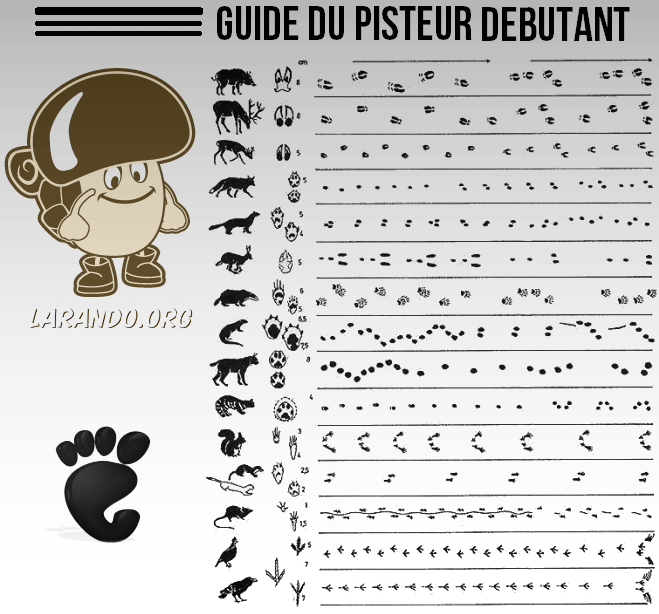 Cela peut vous ête utile dans le cas où vous souhaitez chasser ou photographier des animaux ou si vous souhaitez simplement en apprendre plus sur les créatures avec lesquelles vous partagez l'habitat naturel. Comme vous le savez, les animaux se déplacent énormément, même si nous ne les voyons pas. Les empreintes dans la terre peuvent nous permettre de les identifier.Lorsque vous randonnerez la prochaine fois, vous ferez plus attention si tombez sur des empruntes en forêt ou même dans le désert... Vous pouvez postez, dans ce topic, vos astuces de pistage.