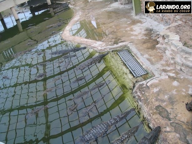 Un imposant fortin évoquant l’architecture du désert marque l’entrée du parc animalier. C’est au son de musique africaine qu’on se laisse guider vers les bassins et la serre tropicale où nagent – ou plutôt paressent au soleil– 400 crocodiles du Nil, ramenés de Madagascar. Le crocodile du Nil est l’une des plus grandes espèces de crocodiliens, elle peut atteindre, pour certains mâles, jusqu’à 7 mètres pour un poids de près d’une tonne. Sa morphologie en fait l’une des espèces les plus redoutables. Découvrez les photos de cette ferme à crocodiles en Tunisie.