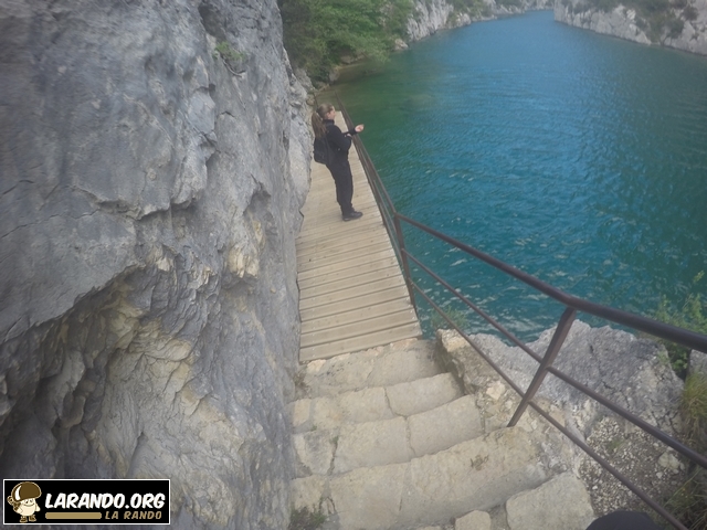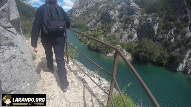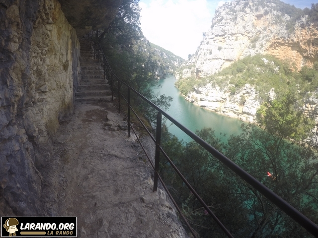 Le départ se fait à la pizzeria « chez Kinou » juste après un pont à Quinson dans le 04. Puis prendre le pont avec les Gorges sur la droite et longer le mur. Puis les marches seront sur votre droite.