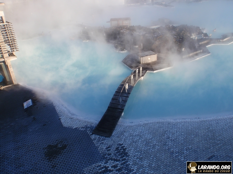La particularité de cette station thermale, est la création d’un lac totalement artificiel de plus de 200 m de long dans une zone volcanique, au milieu des champs de lave et de lichen alimenté par l’eau de la centrale électrique géothermique voisine de Svartsengi.