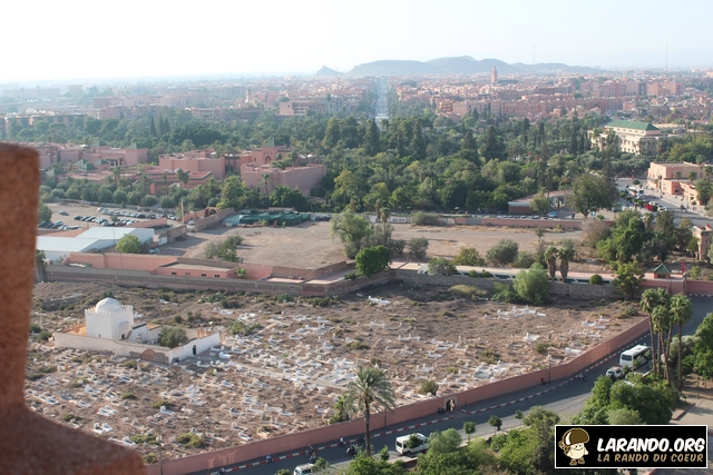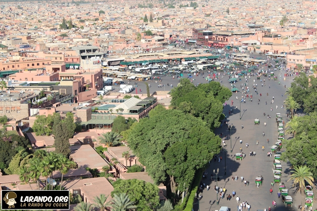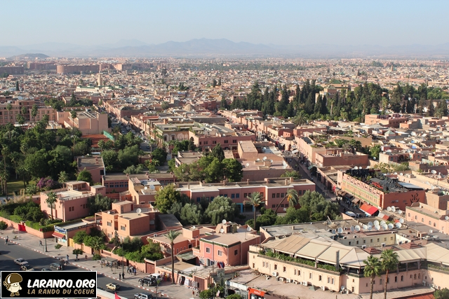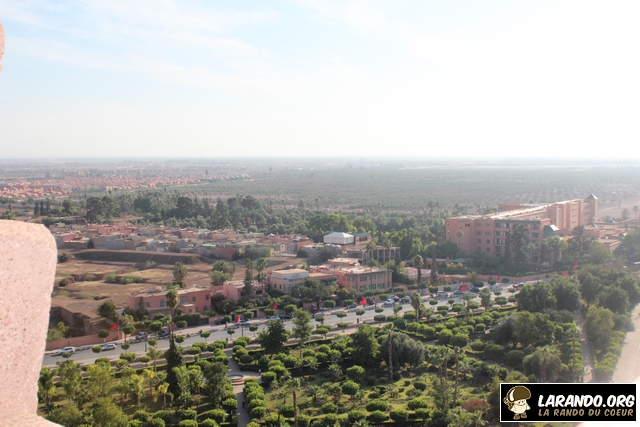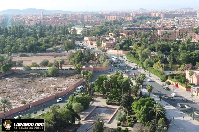 Marrakech est une ville riche en histoire et en traditions qui se perpétuent depuis l’aube des temps. A plusieurs mètres d’altitude, nous découvrons une vue panoramique exceptionnelle de Marrakech. C’est au sommet de la mosquée Koutoubia que les membres de l’association La Rando du Coeur ont pu voir la ville sous un angle indédit! Pour rappel, la mosquée de la Koutoubia est un édifice religieux édifié au XIIe siècle à Marrakech et représentatif de l’art des Almohades. Elle fut débutée sous la dynastie berbère des Almoravides en 1120, mais fut profondément remaniée à partir de 1162 sous l’émir Almohade Abu Yusuf Yaqub al-Mansur, et devint l’un des édifices les plus caractéristiques de ce style. Son nom vient du fait qu’elle se situait dans le souk des marchands de manuscrits. Au sommet de cette dernière, nous nous sommes rendu compte que chaque ville s’inscrit en nous comme un paysage. Découvrez les photos de la ville prises au sommet de la Koutoubia ci-dessous.